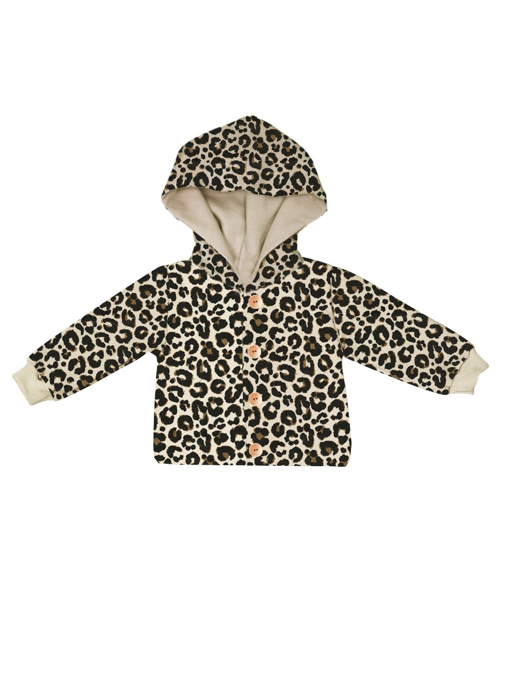 Táto štýlová detská mikina s kapucňou a leopardím vzorom je ako stvorená pre malých dobrodruhov. Mikina je ušitá z príjemného materiálu, ktorý je mäkký na dotyk a zároveň priedušný, takže zabezpečuje celodenné pohodlie. Kapucňa s podšívkou poskytuje extra ochranu pred vetrom a chladom, zatiaľ čo praktické zapínanie na drevené gombíky uľahčuje obliekanie. Elastické patenty na rukávoch zaručujú, že mikina dobre drží a nevyhŕňa sa. Výrazný leopardí vzor dodáva outfitu hravosť a originalitu. Skvelá voľba na jesenné prechádzky, výlety alebo len tak – na každodenné nosenie s výrazným štýlom.