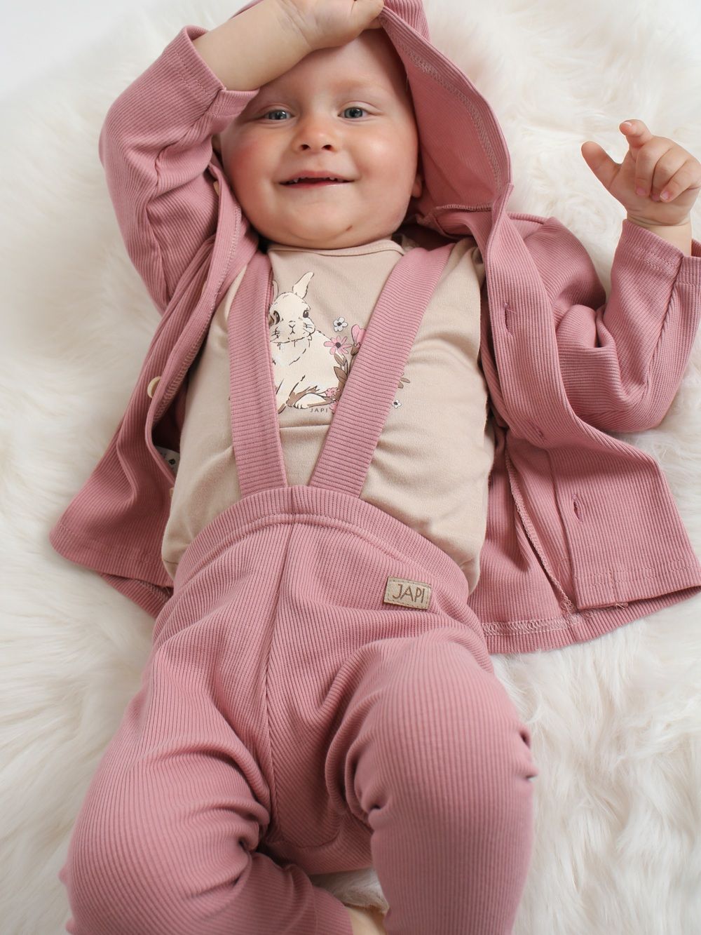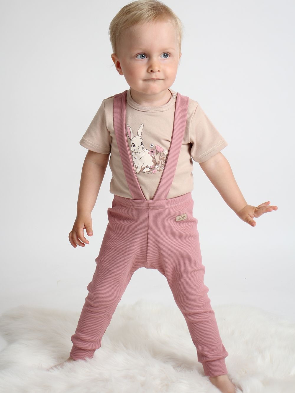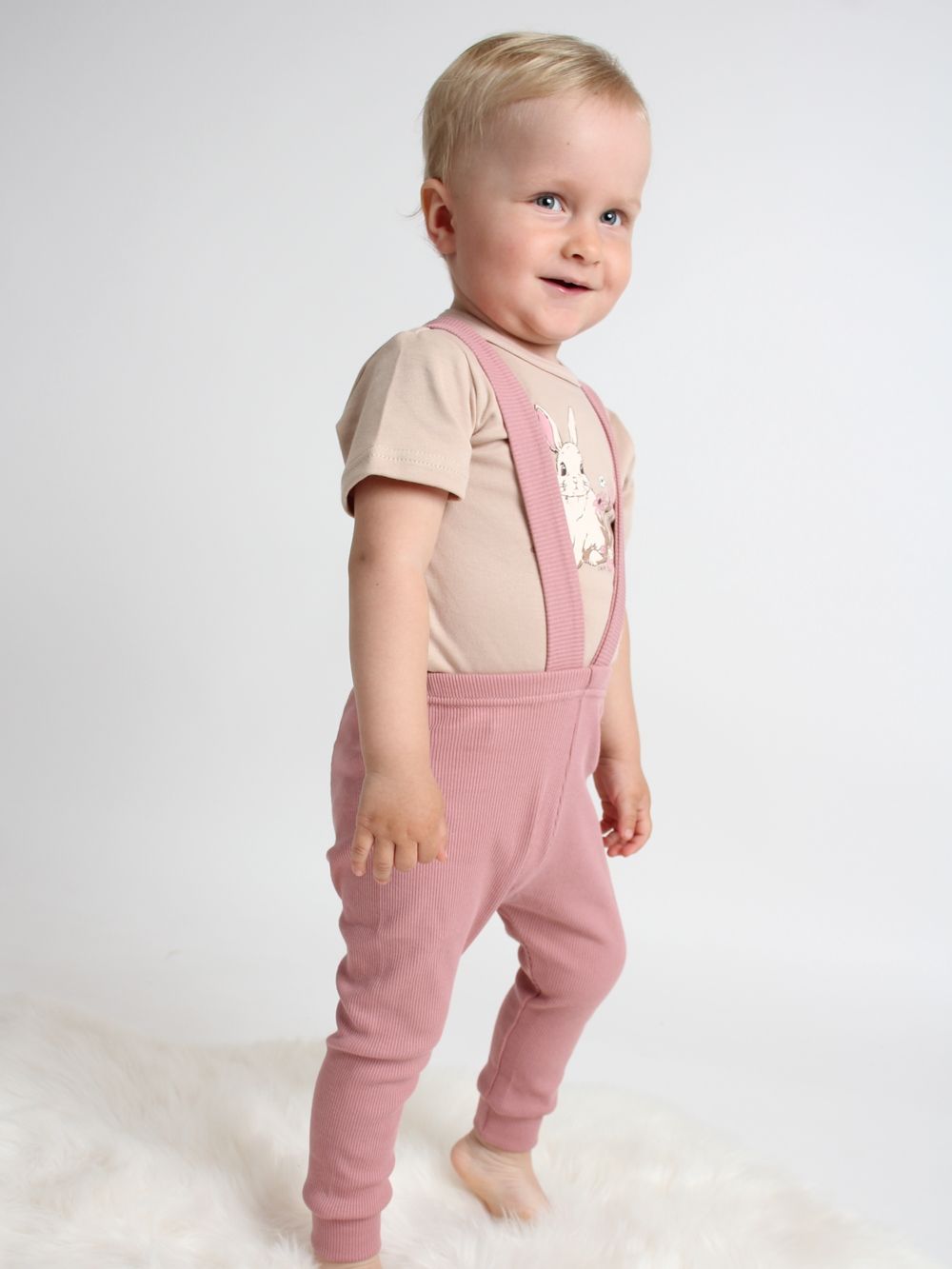 Tepláky na traky sú ušité zo 100% bavlnenej látky s vrúbkami. Majú veľmi pohodlný strih a spolu s detským tričkom alebo body vytvoríte zladenú súpravu oblečenia.